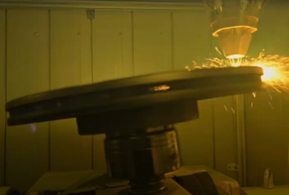 图4 刹车盘耐磨涂层高速激光熔覆过程 | 图5 熔覆前的刹车盘 | 图6 熔覆后的刹车盘 |
