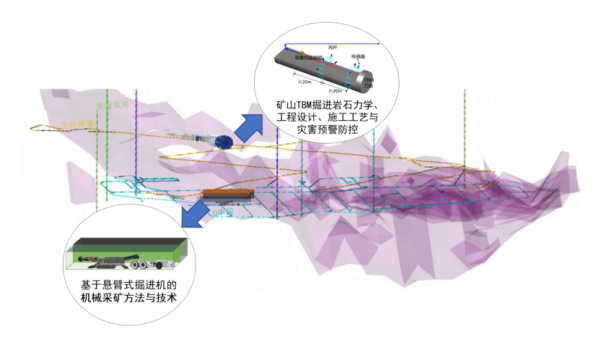 金属非金属矿山“凿岩爆破”开采方式决定了采矿工艺流程无法实现连续作业,而且爆破作业本身具有有害效应与较高安全风险。随着科技水平的发展,煤矿采煤机械、金属非金属矿山采掘机械及全断面隧道掘进机(TBM)等装备与技术相互影响渗透,机械破岩装备向着行业、技术融合的趋势进步,地下矿山迎来了由传统凿岩爆破开采向非爆机械连续开采的新跨越。机械连续开采技术是五大联赛在线的重点发展方向。技术方向在机械刀具破岩力学及优化、机械采矿岩石力学、机械采矿工艺、机械采矿机电一体化选型配套、机械开挖岩体稳定性控制及安全保障技术、金属非金属专用机械采掘装备等方面取得了众多创新研究成果,研发形成多项自主知识产权的新一代机械采矿装备及配套产品,构建出一套机械连续采矿的基础理论与技术体系。自主研发的机械破岩试验平台、机械破岩装备选型系统、新型机械破岩悬臂式采矿机、便携式可截割性测试分析仪等,已在众多项目中起到关键支撑作用,并在国内多家地下金属非金属矿山中实现了推广与应用。