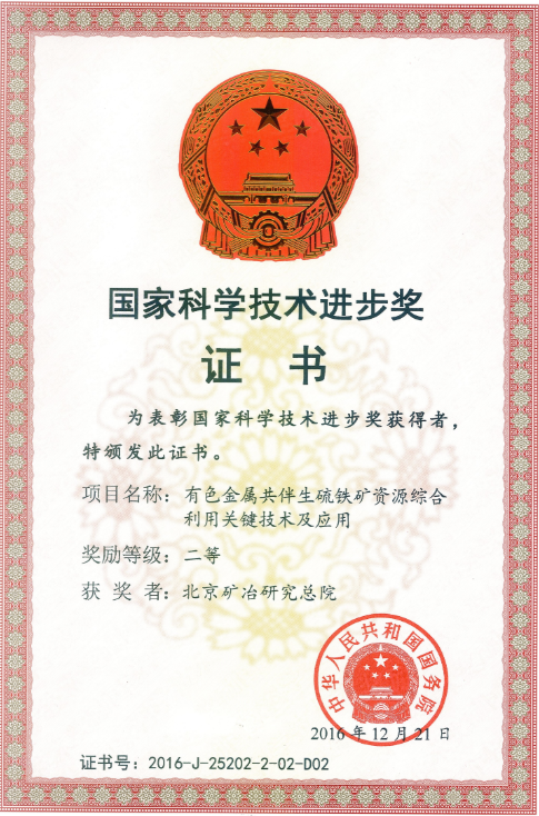 3 | 2016 | 国家级 | 国家科技进步奖 | 2 | 国务院 | 有色金属共伴生硫铁矿资源综合利用关键技术及应用 |